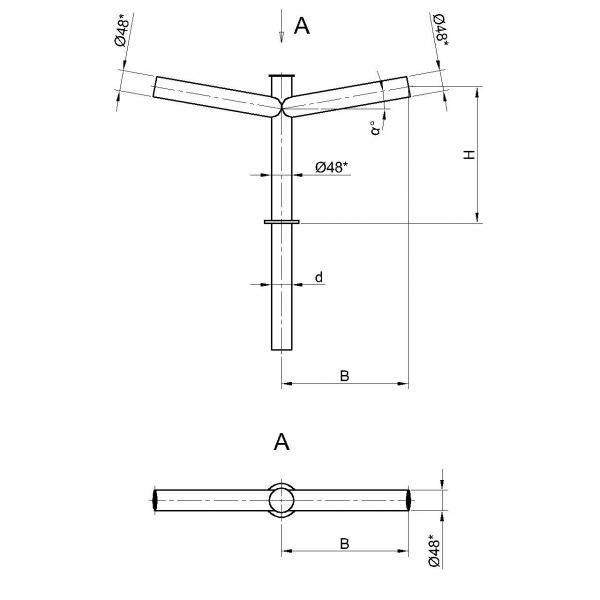 Двухрожковые кронштейны К21-0,5-0,5-0-1 предназначены для крепления светильника на трубчатой опоре освещения.