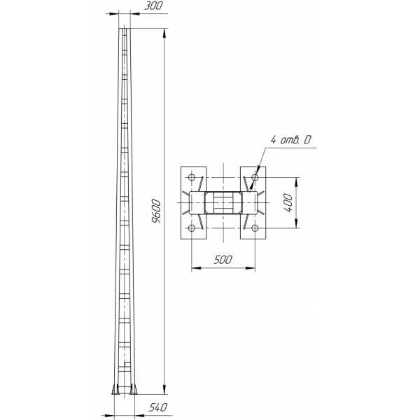 МГК1-10-60 — металлическая стойка опоры контактной сети ж/д из гнутого швеллера, цельная (один пояс), высотой 12 метров, изготовленная из низколегированной марки стали С345.