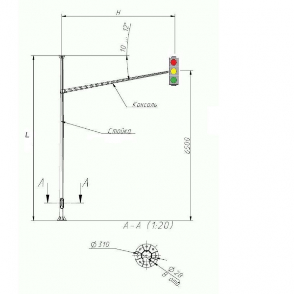 Опора ОГСГ-6,0-6,0 — это гранёная силовая светофорная конструкция. Используется для установки светофоров, возможно дополнительно установить дорожные знаки, указатели, видеофиксаторы.